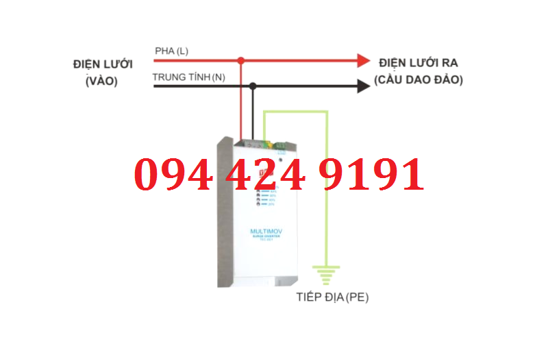 - Đấu nối bộ chống sét | Đứng độc lập 1 pha 220Vac | Muốn lắp đặt phải có thêm Module bảo vệ N-E |