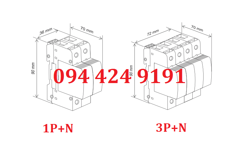 Kích thước chống sét Cirprotec | : 70×36×90mm | : 70×72×90mm |