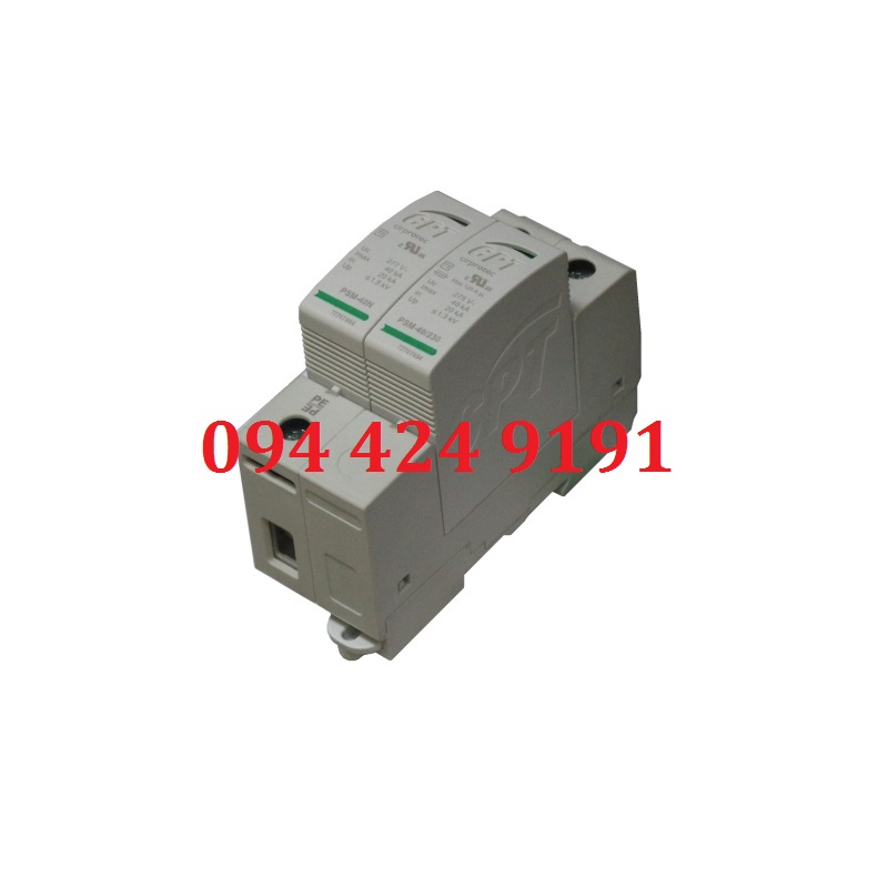 - Cắt sét 1 pha 1P+N, In: 20kA, Imax: 40kA bảo vệ Class 2, Type 2, phù hợp tiêu chuẩn IEC 61643-11, EN 61643-11, UL1449. Thời gian đáp ứng < 25ns. Mã hàng: PSM2-40/230TT. Xuất xứ: Cirprotec-Tây Nha. Đơn giá: 2.850.000 vnđ/bộ.