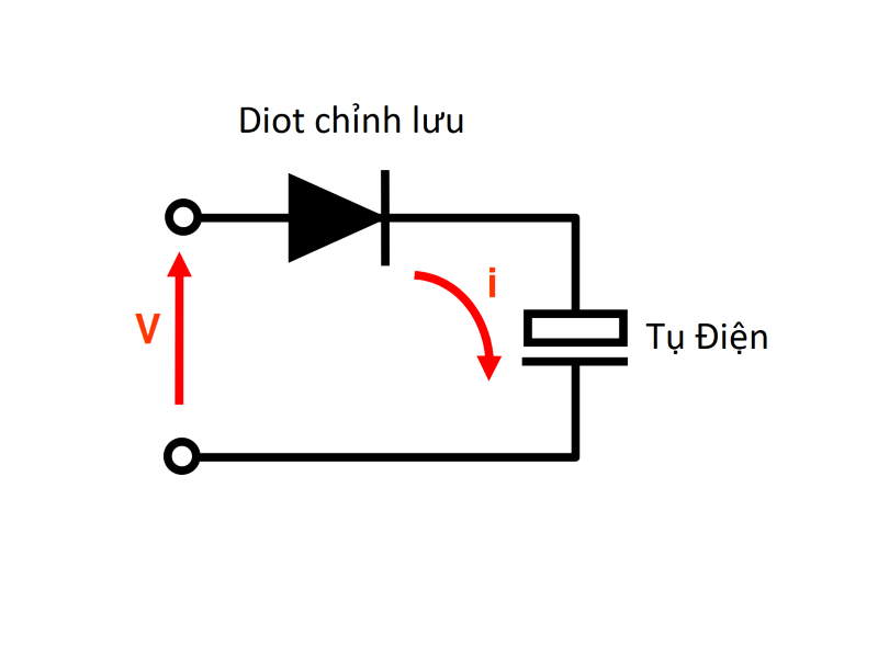 + I = dòng điện vào tụ điện