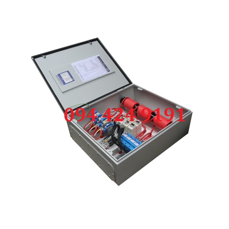 - Tủ cắt lọc sét 3 pha 32A, 40A, 63A, 125. Bảo vệ điện hạ áp 3 pha 4 dây và đất. Điện áp Un: 220/380Vac. Điện áp làm việc cực đại Uc 385Vac. Bảo vệ Class 2, dòng cắt sét sơ cấp 50kA hoặc mở rộng 200kA, dòng cắt sét thứ cấp 50kA hoặc 100kA. Mã hàng: SF332(40, 63, 125)-385-100+50-AIMCB. Đơn giá: 55.000.000 vnđ/tủ.