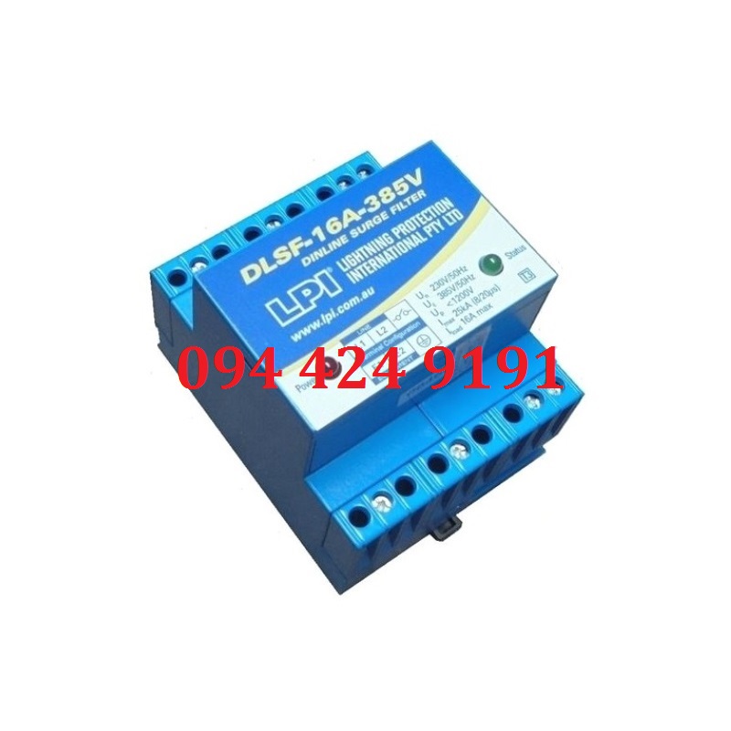 - Thiết bị cắt lọc sét 1 pha dòng tải 16A, điện áp làm việc bình thường Un: 240 hoặc 277V, dòng cắt sét 25kA+25kA, mắc nối tiếp với tải tiêu thụ. Mã hàng: DLSF16A-385V hoặc DLSF16A-480V. Xuất xứ: Lpi-Úc. Đơn giá: 4.850.000 vnđ