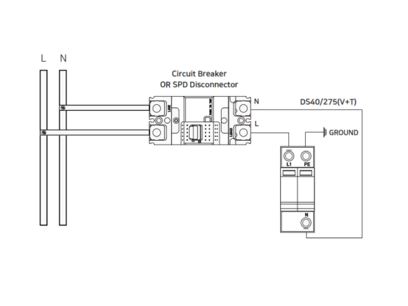 Hình ảnh: sơ đồ đấu nối cắt sét DS40-275 1pha