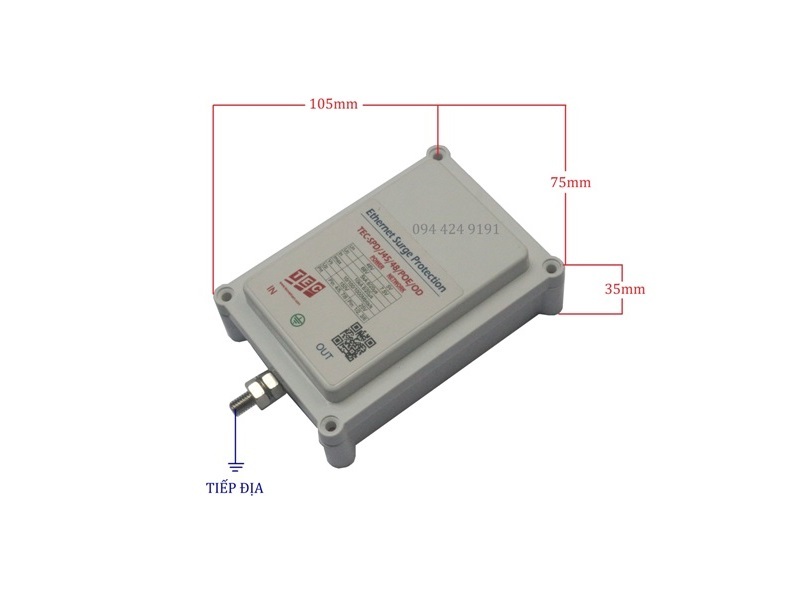 - Mọi thông tin chi tiết về sản phẩm chống sét TEC vui lòng liên hệ theo địa chỉ VPGD: Số 3, ngách 19/2, ngõ 19, phố Kim Đồng, Tương Mai, Hà Nội. Hotline: 0944249191. Ngoài sản phẩm chống sét tín hiệu ngoài trời chúng tôi còn cung cấp thiết bị chống sét cảm ứng loại trong nhà TEC SPD-J45-48-POE.