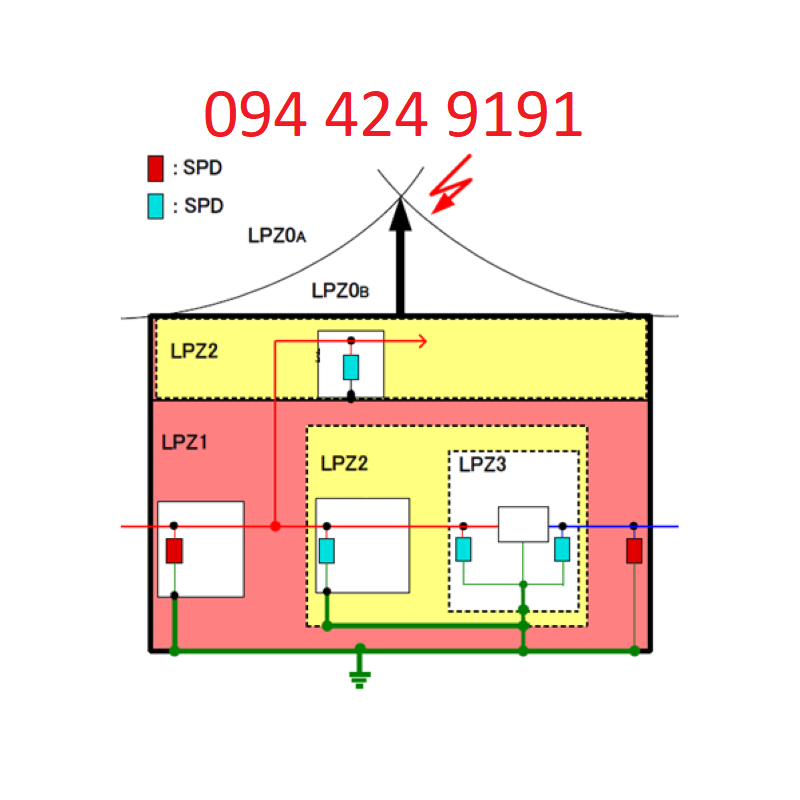 - Trong tòa nhà và nhà máy nói chung, vùng LPZ1 trạm điện tổng, LPZ2 tủ điện phân phối,LPZ3 là thiết bị điện, thiết bị chống sét lan truyền nên được chọn dựa trên vùng LPZ.