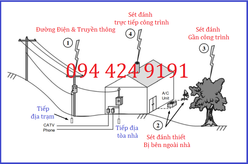 + Thứ hai: Chống Sét đánh lan truyền, cảm ứng.